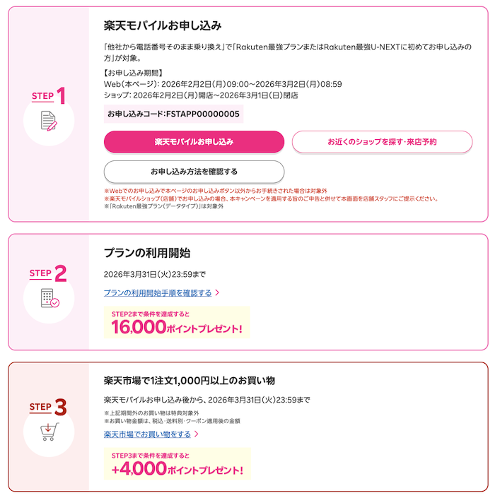 2026年2月 楽天モバイル新規加入キャンペーンの概要