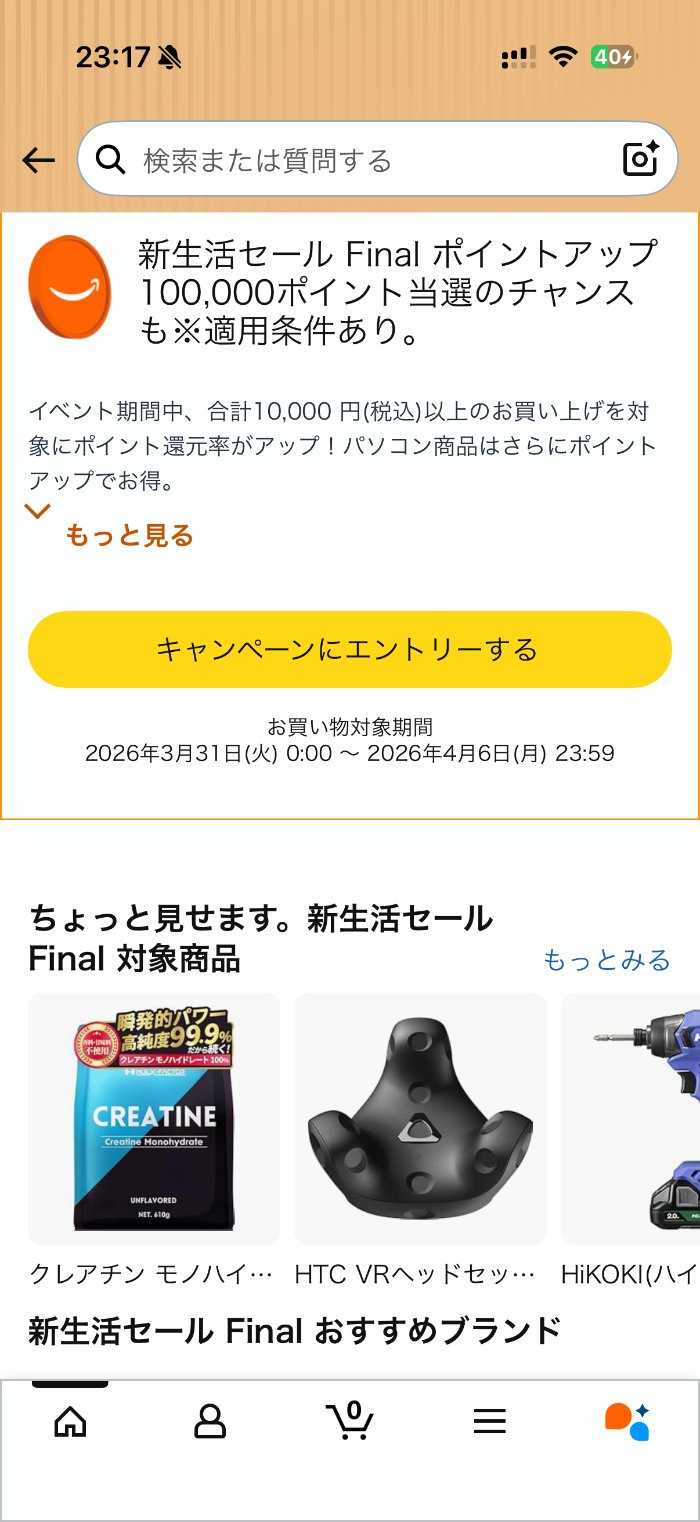 2026年4月3日から4月6日まで、Amazonで「新生活セール Final」が開催されます。