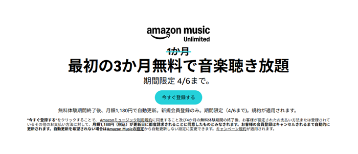 - 新生活セール期間中はMusic Unlimitedがお得!