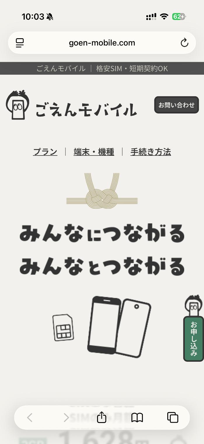 公式サイト>>ごえんモバイル
