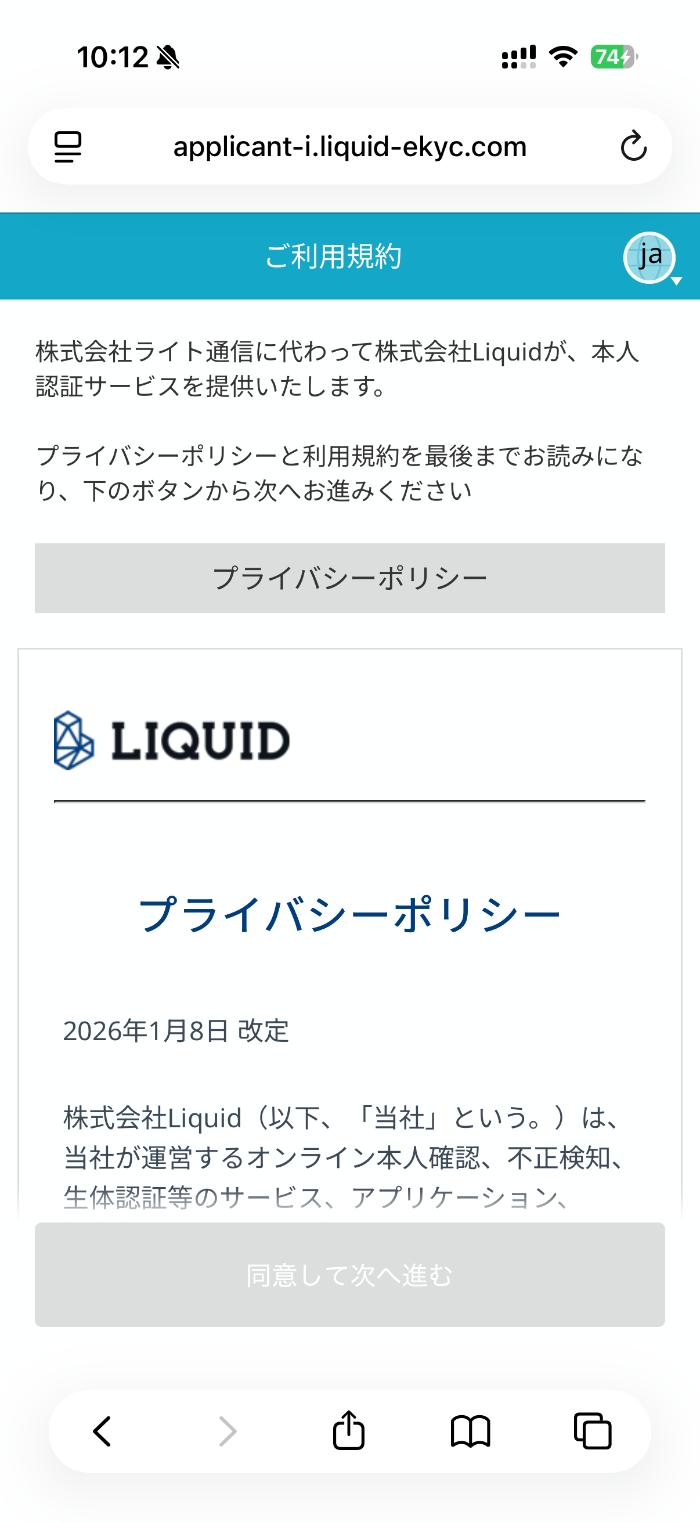 ごえんモバイルでは、ネットで完結するeKYCサービス「LIQUID」で行います。