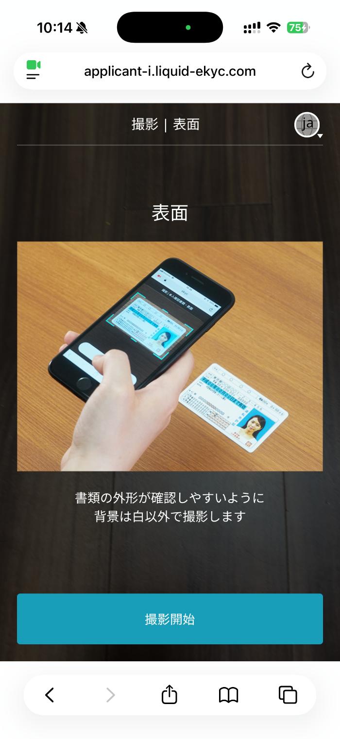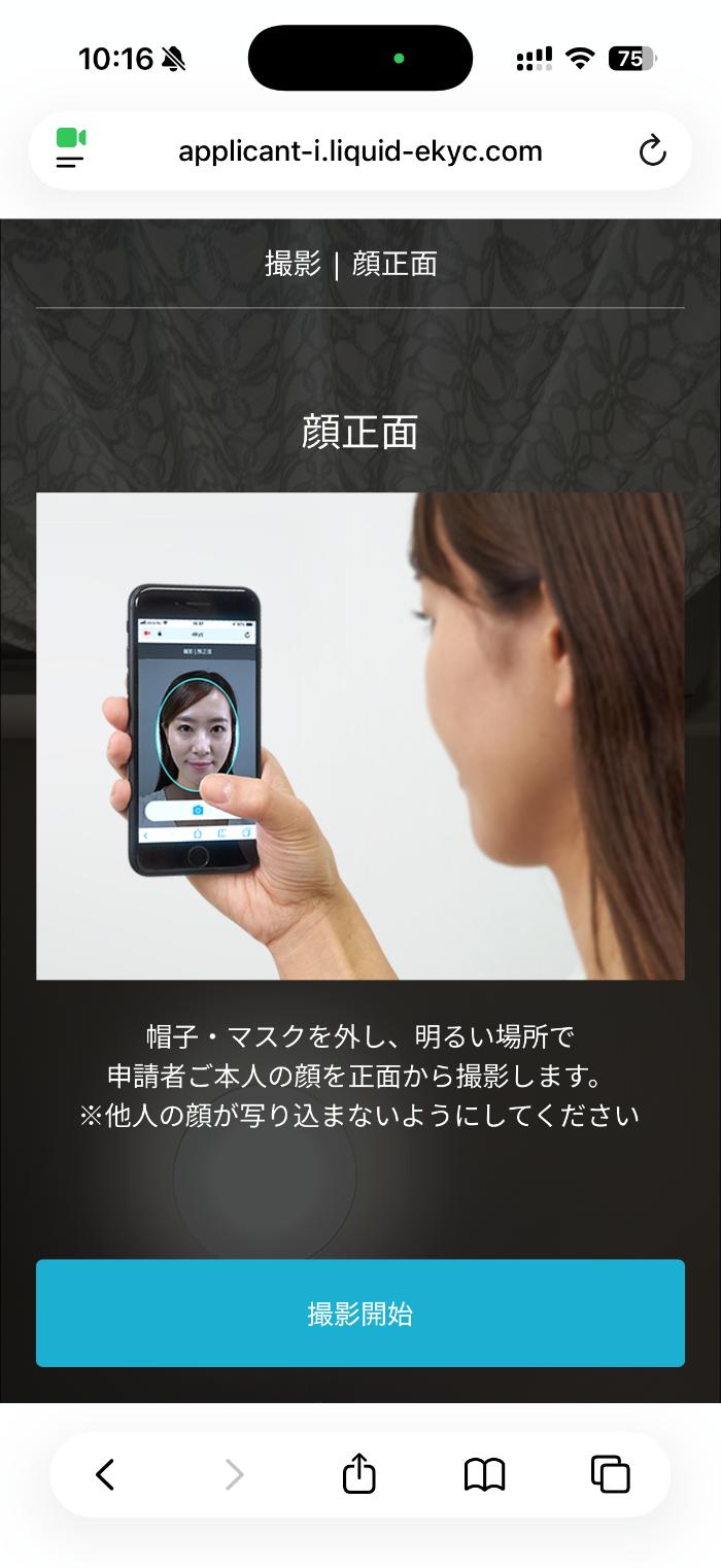 スマホカメラを使って、本人確認を進めていきます。