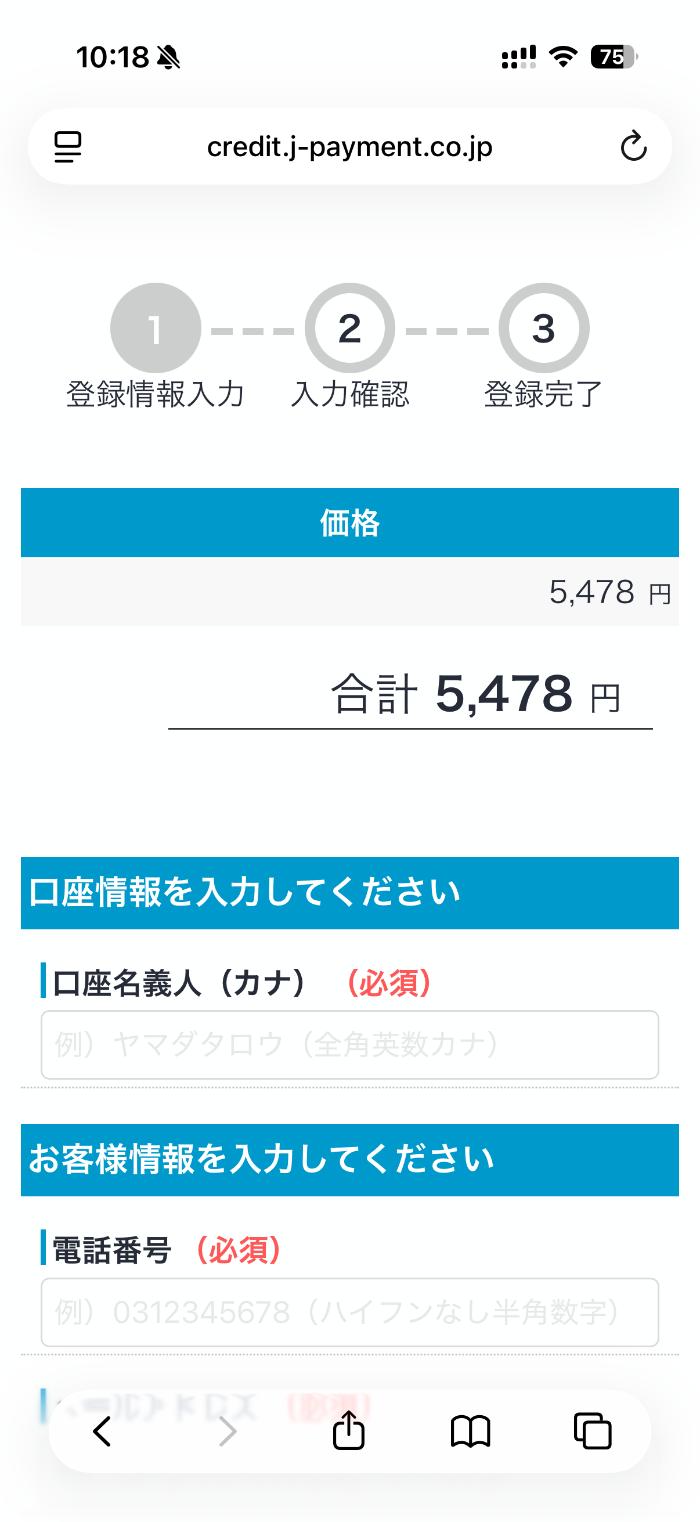 必要事項を入力して、表示通りに進めていきます。