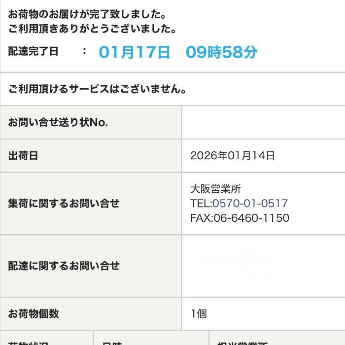 - 発送連絡:1月14日(水曜日)