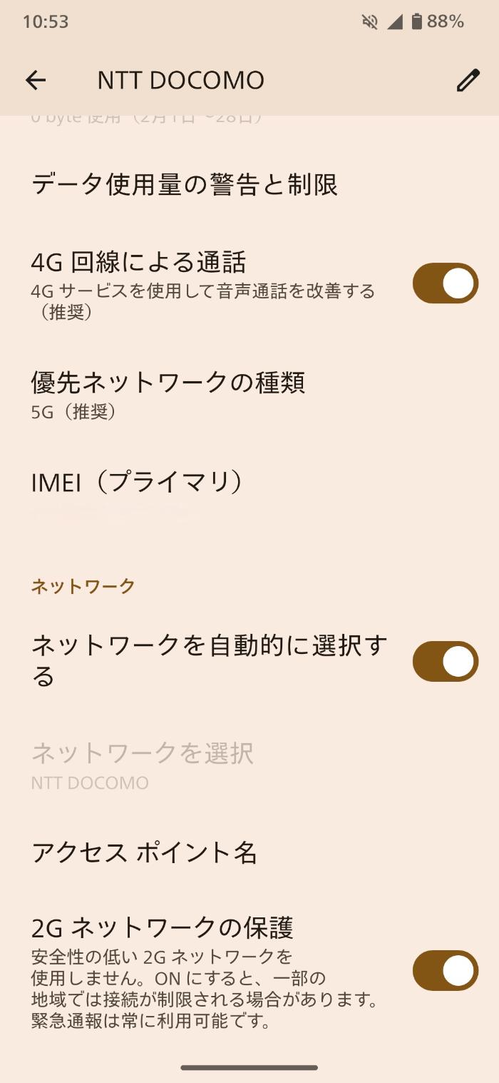 AQUOS sense10の場合は、設定内にある以下の場所でAPN情報を入力します。