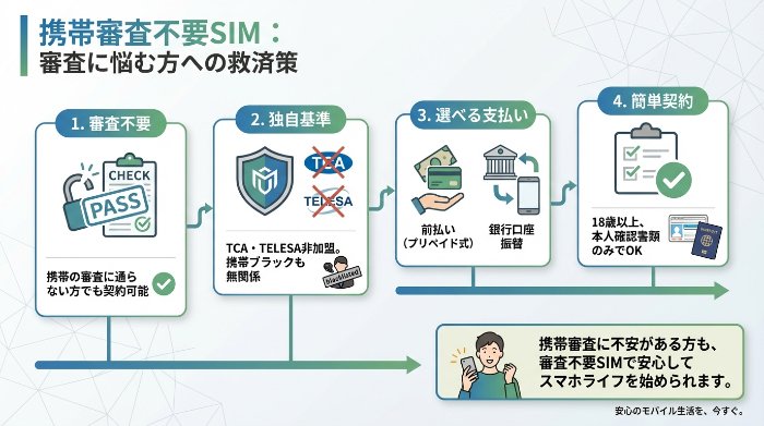 そんな時に救済策となるのが「審査なし格安SIM」です。