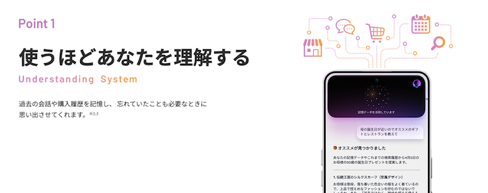 ① Understanding System(使うほどユーザーを理解する記憶機能)