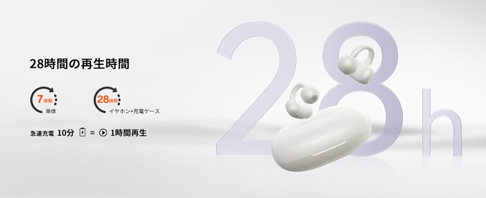 再生時間 | イヤホンのみ:7時間 ケース込み:28時間 |