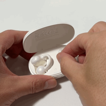 充電ケースの蓋を開けてイヤホンを取り出すとペアリングモードに。