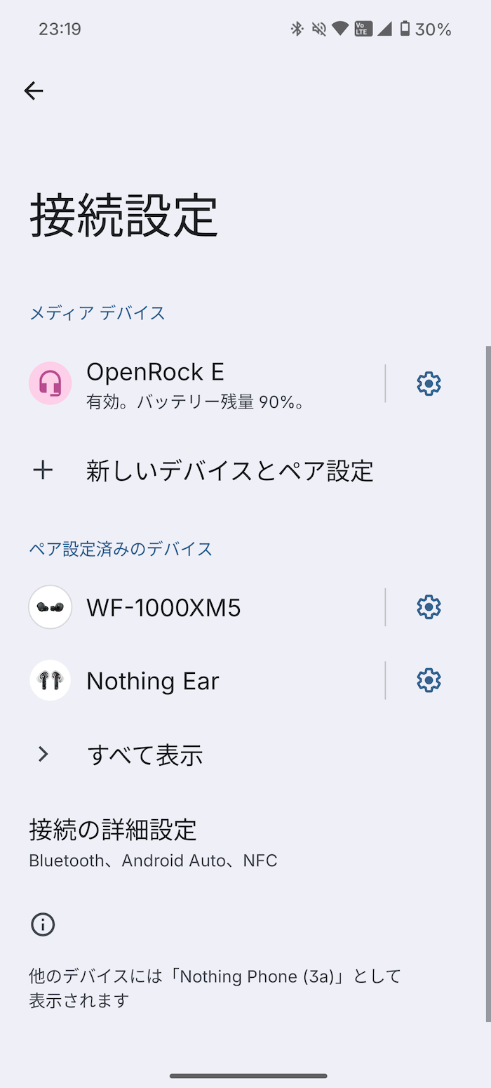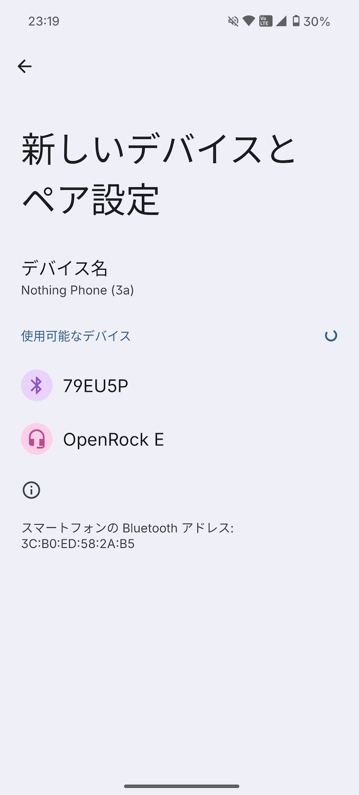 あとは接続したいスマホやタブレット等のBluetooth設定で「OpenRock E」を見つけてタップすればペアリング完了です。