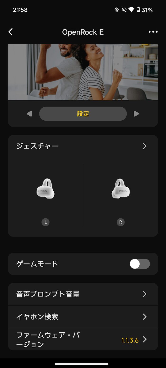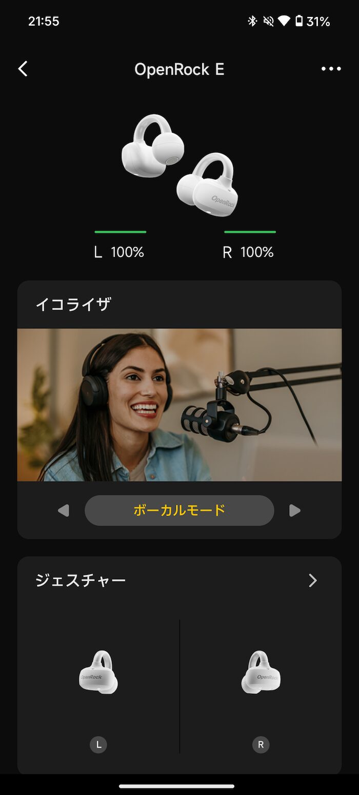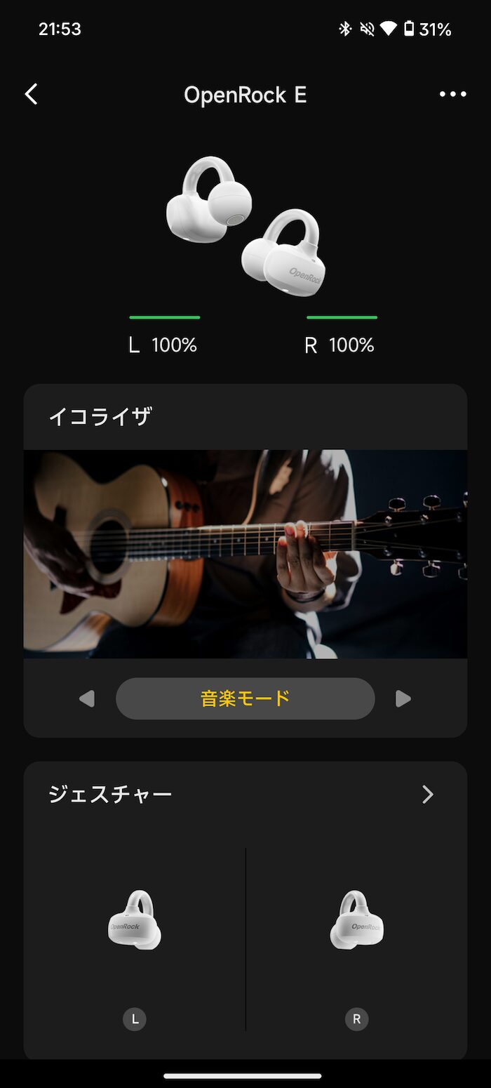 OpenRock Eのコンパニオンアプリにはイコライザーが搭載されているので、音質調整が可能です。