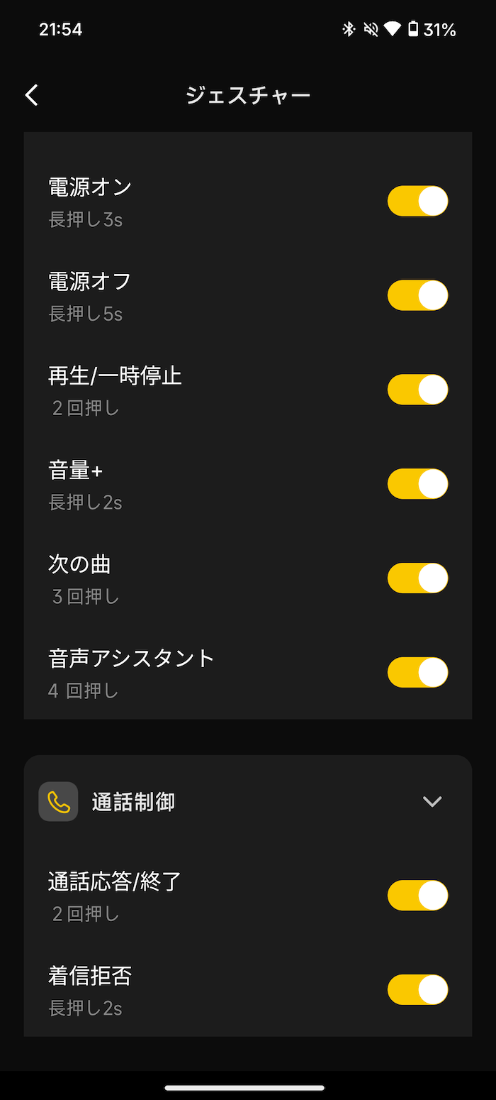 なお、アプリには記載されていませんが、ペアリングモード中に5回タッチで工場出荷時へのリセットも可能です。