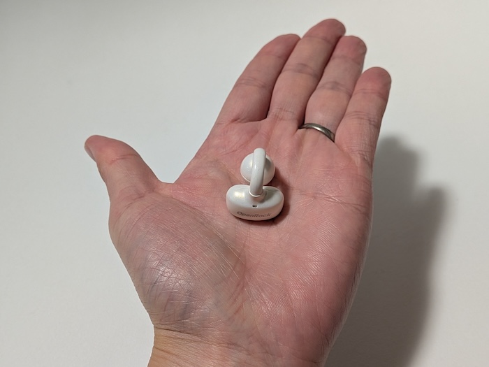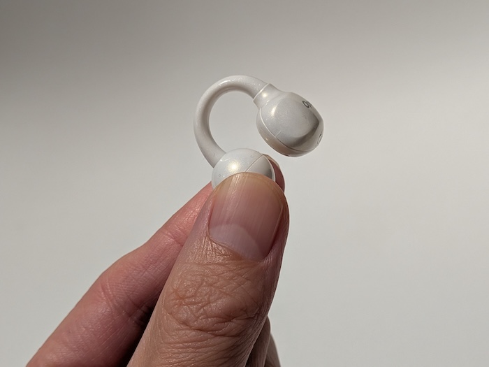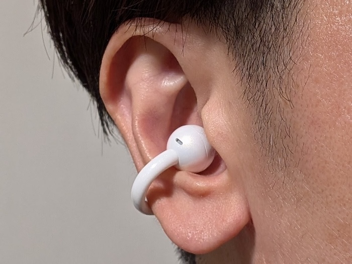 一般的なワイヤレスイヤホンよりは厚みがあるものの、他社製イヤーカフタイプに比べると小さく感じました。