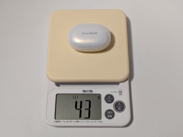重さも実測で43gと軽量。ポケットに入れて持ち歩けそうです。
