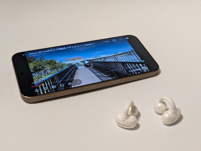 通常オープンイヤータイプのイヤホンは構造上どうしても低音域が減衰してスカスカな音になりがちなんですが、OpenRock Eはしっかり残っていて、ドラムの音やベースの音を感じることができました。