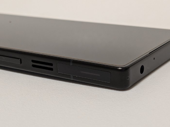 カードスロットとマイクが横並びなので、誤ってマイクにSIMピンを刺さないように注意しましょう。カードスロットは表裏に1枚ずつ装着できるタイプです。