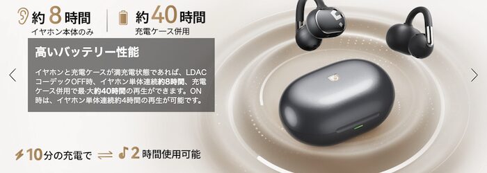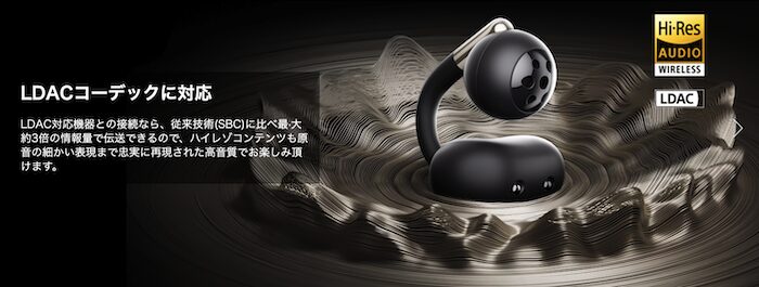 SOUNDPEATS Clip1の特徴はBluetoothコーデックとしてLDACに対応していること。