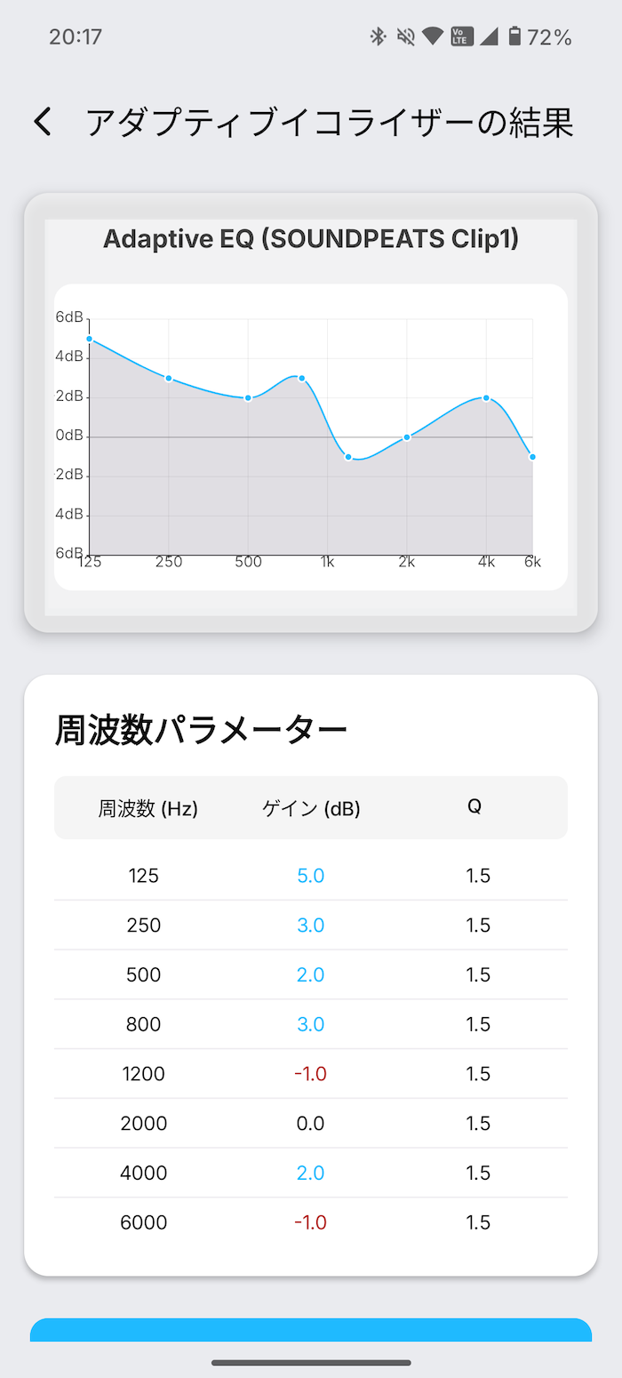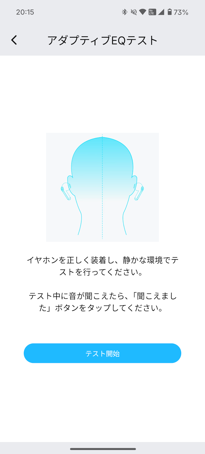 また「アダプティブイコライザ」では、聴力検査のようなテストをして自分の「聞こえ」に合ったイコライザーを生成することも可能です。