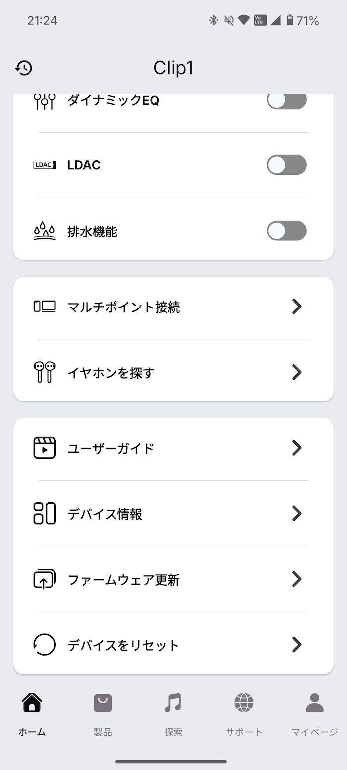 SOUNDPEATS Clip1のコンパニオンアプリにはイコライザーが搭載されているので、音質調整が可能です。