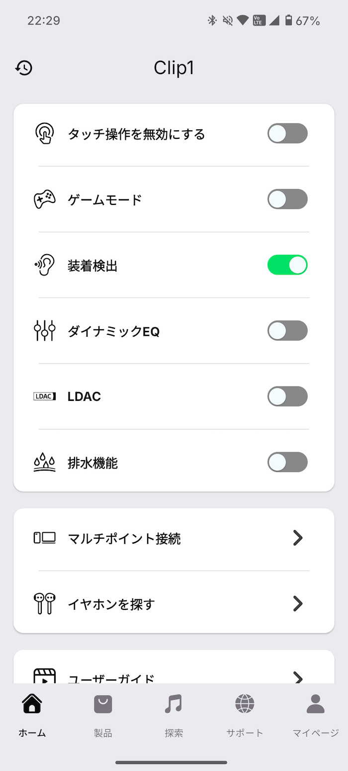 SOUNDPEATS Clip1は、Googleの「Find Hub(デバイスを探す)」には対応していないものの、アプリの「イヤホンを探す」機能で音を鳴らすことはできました。