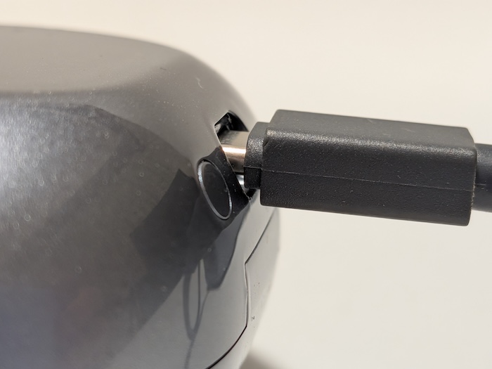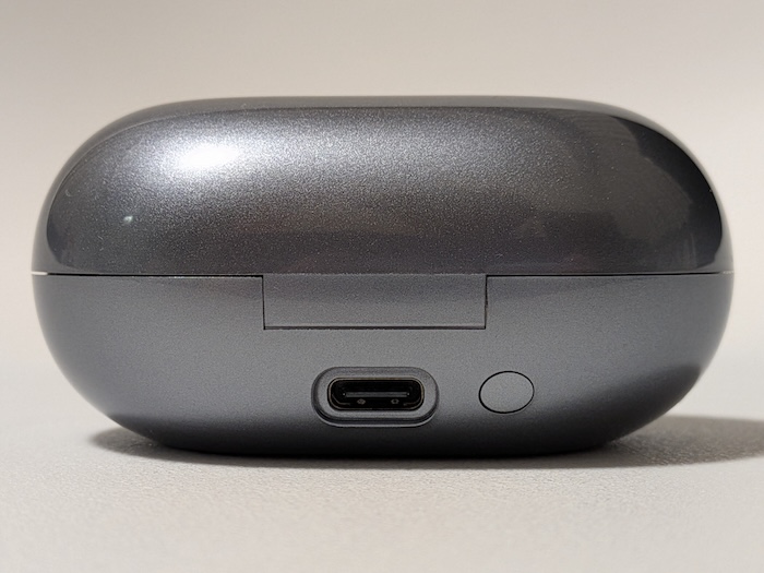 背面には充電用のUSB Type-Cポートとペアリング用の物理ボタンがありました。