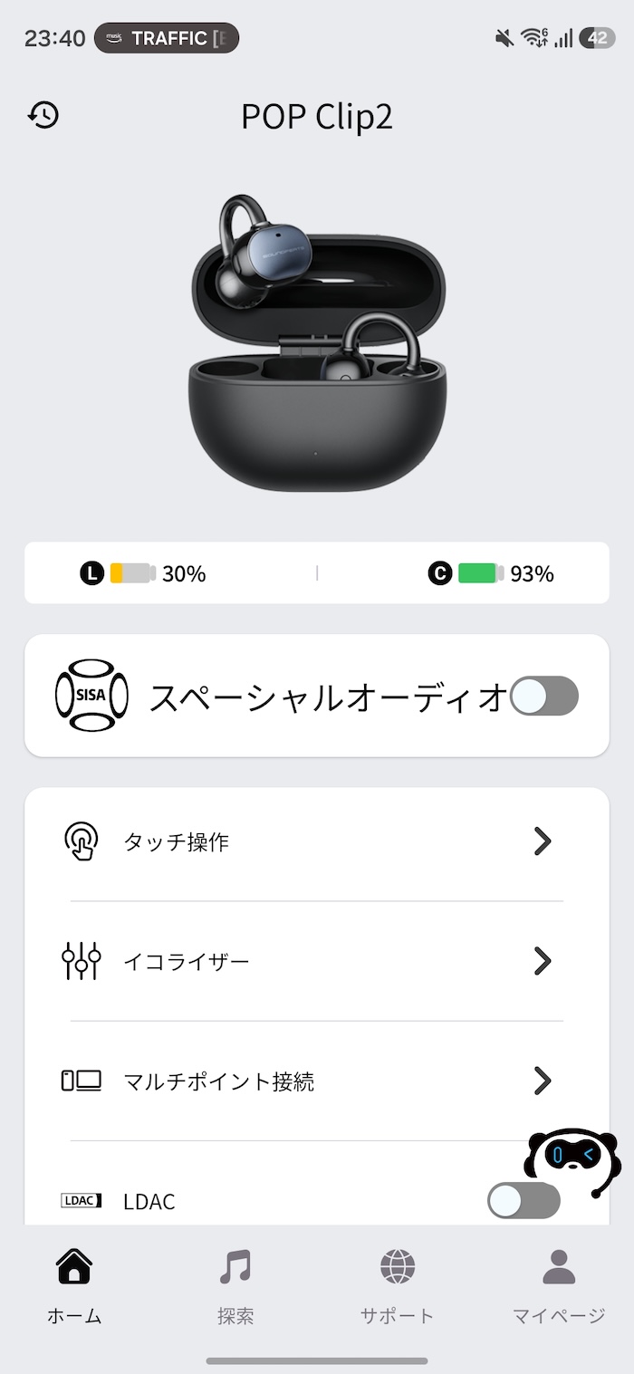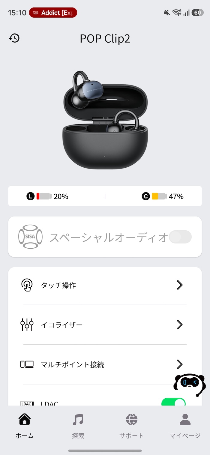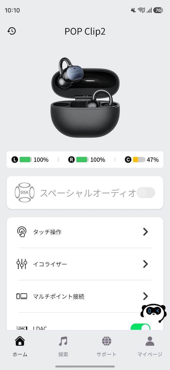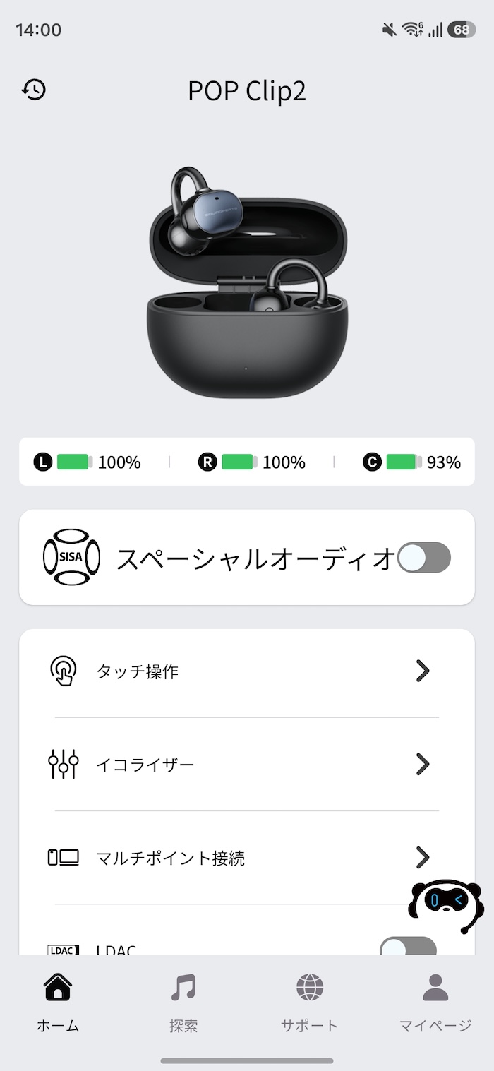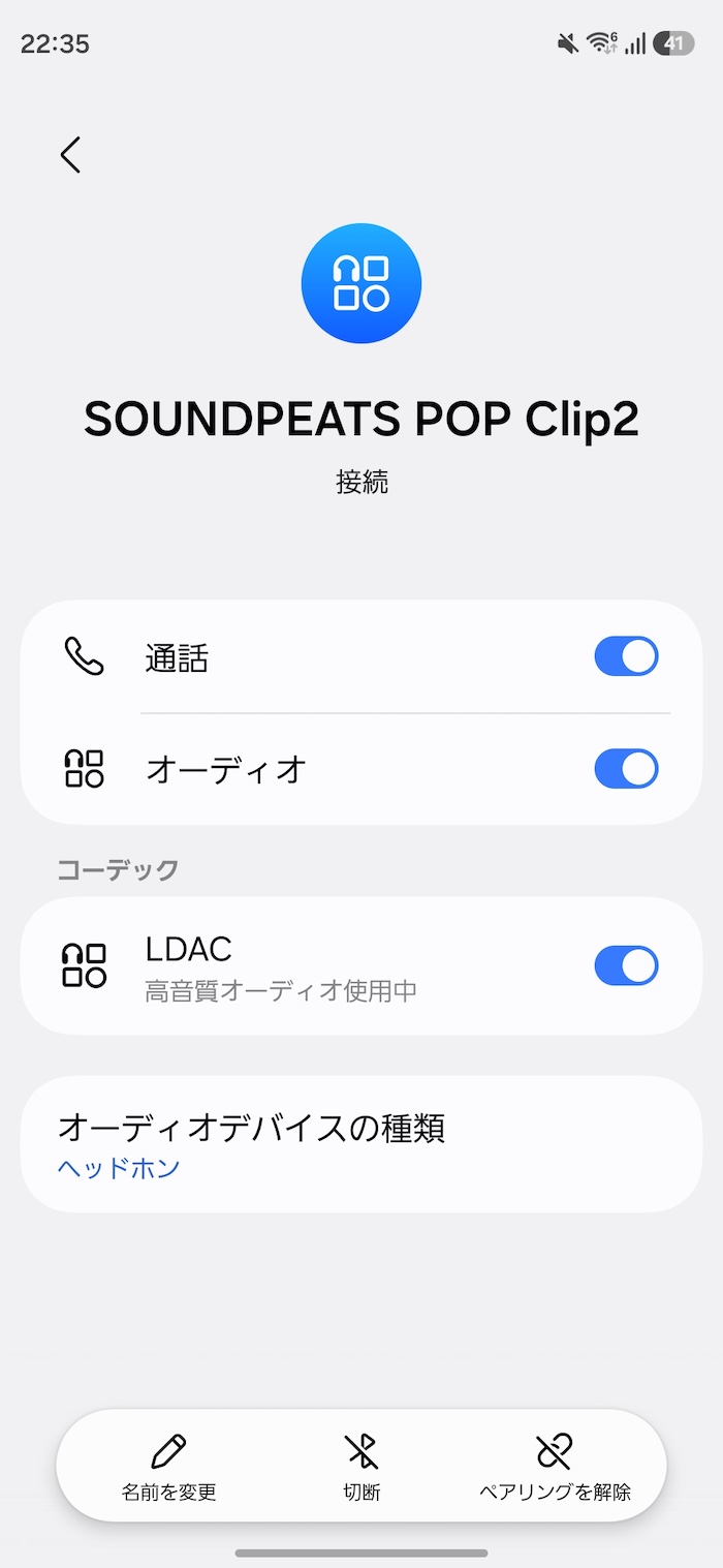初回接続時はSBC/AAC接続になります。LDACで使いたい場合はSOUNDPEATSアプリからLDACをオンにする必要があります。
