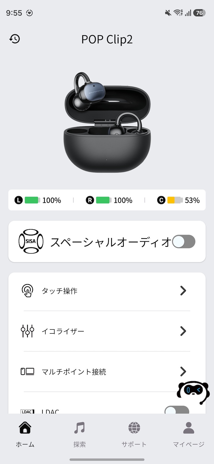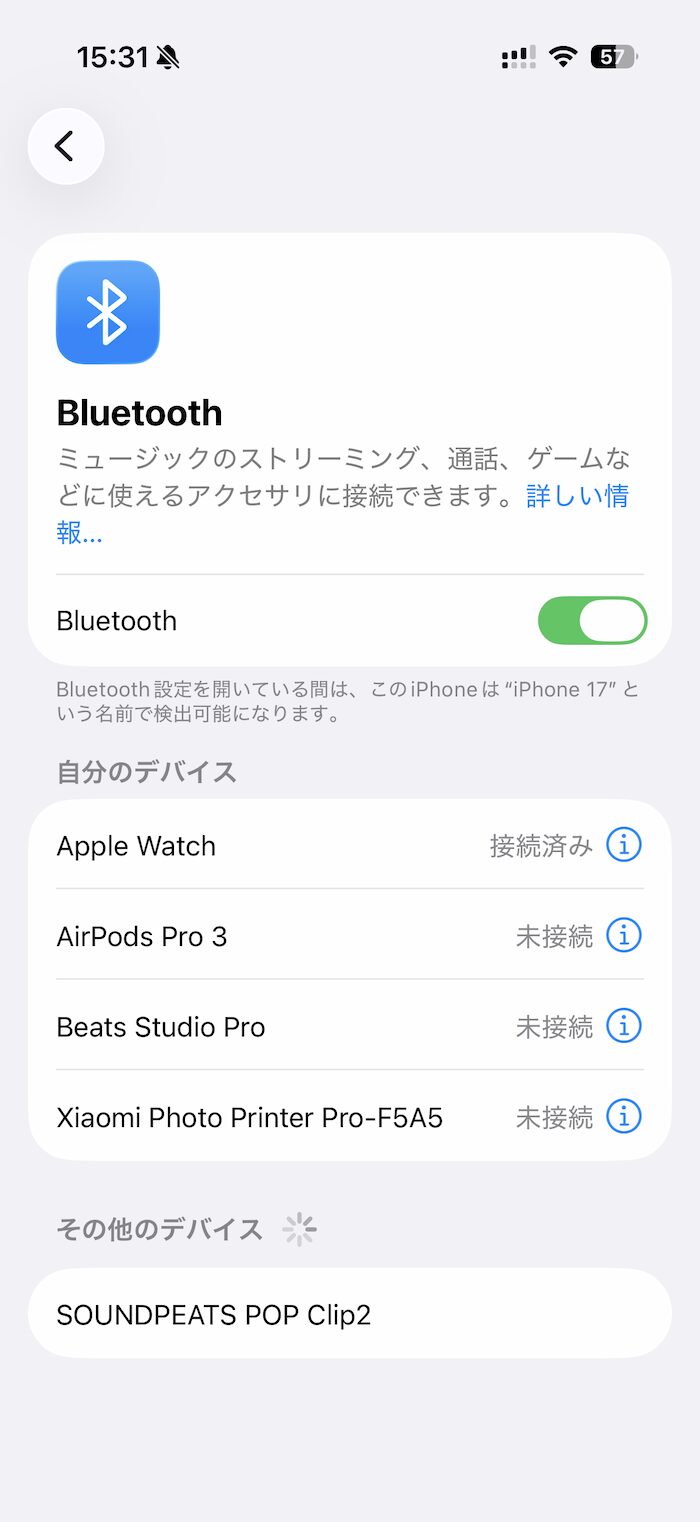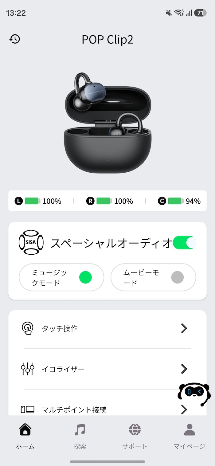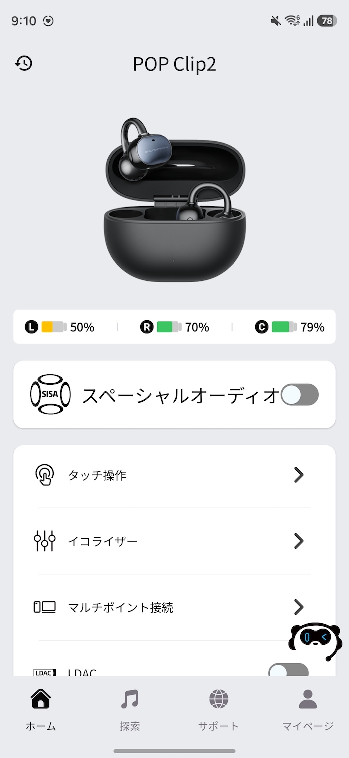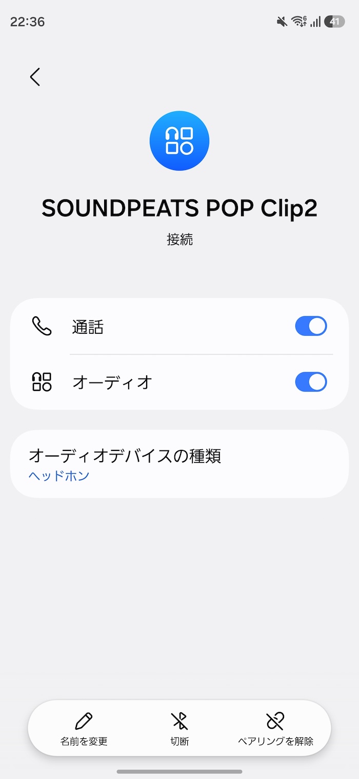 なお、Bluetooth上の機器名は「SOUNDPEATS POP Clip2」と表示されます。