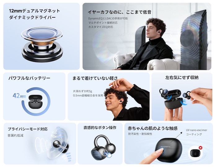 2026年4月20日発売のSOUNDPEATS製イヤーカフ型オープンイヤーイヤホンです。