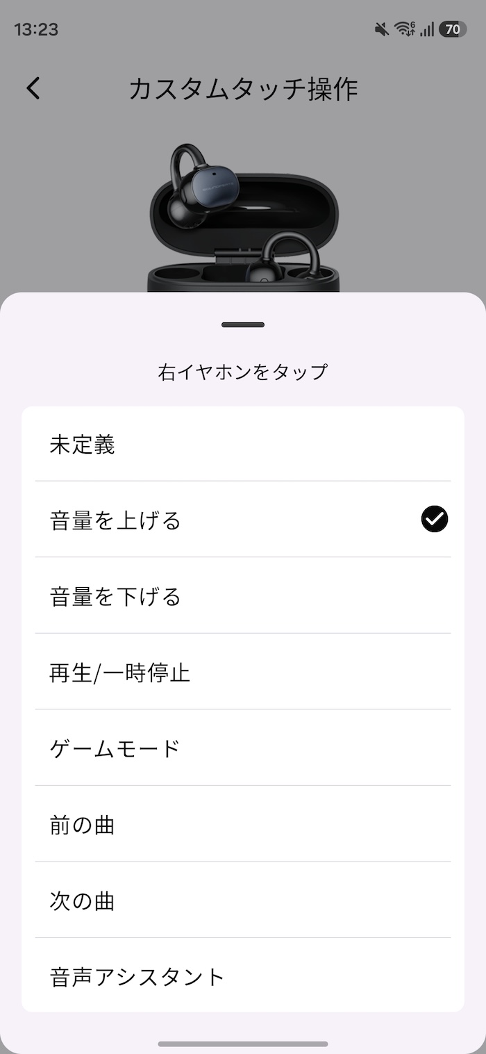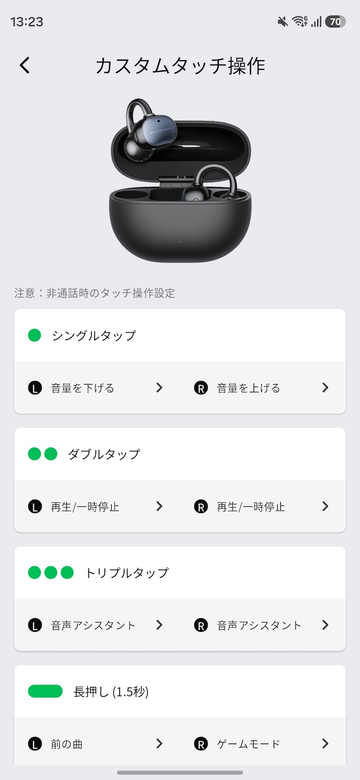 もちろんSOUNDPEATSアプリで左右それぞれのボタン操作をカスタマイズ可能です。