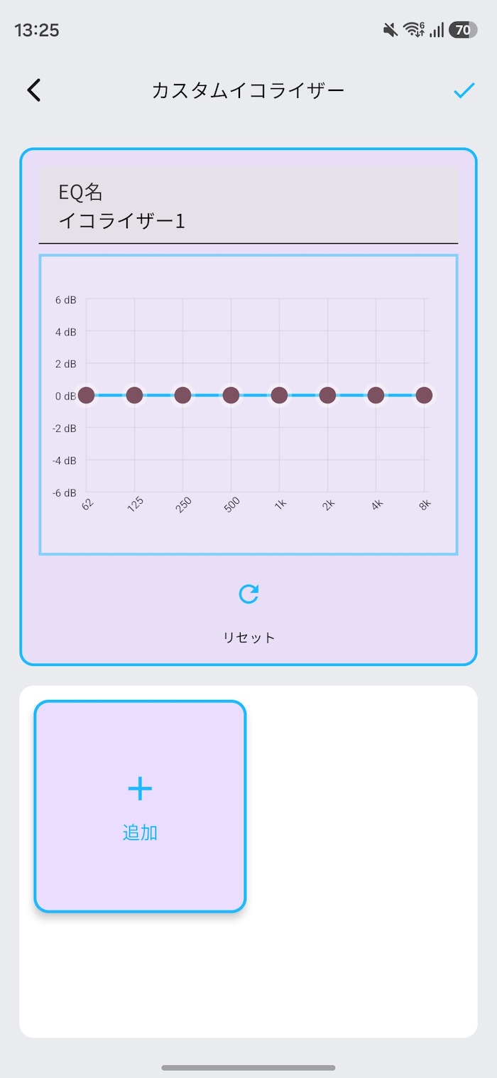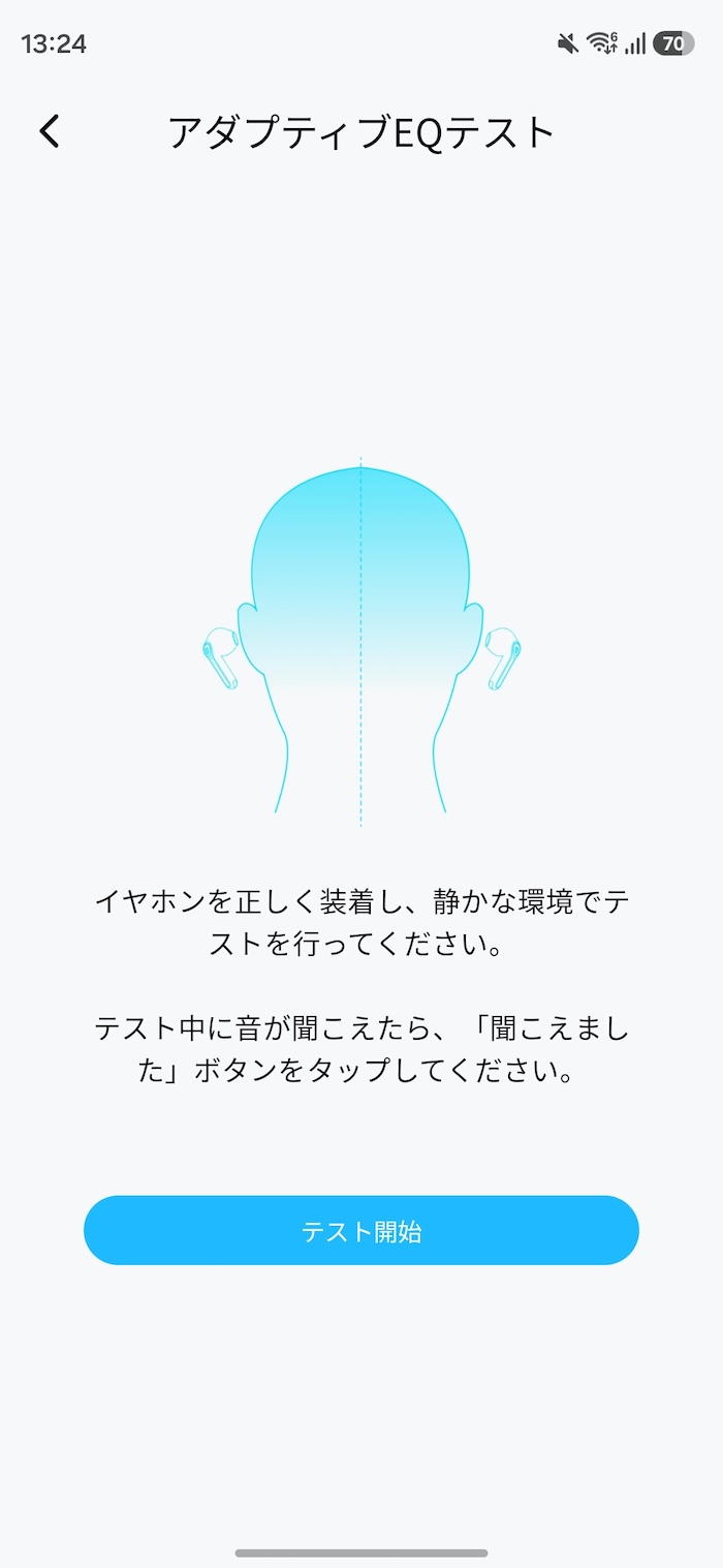 カスタムEQでは8バンドで細かく調整でき、適応型EQでは聴力テストのような形で自分の聴こえに合ったEQを自動生成してくれます。
