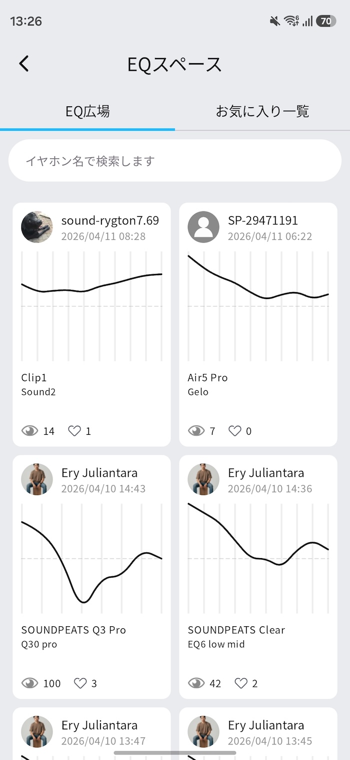 またEQスペースというユーザーが作ったEQ設定を共有・参照できるSNS的な機能も搭載されており、他のユーザーのEQを試してみることもできます。