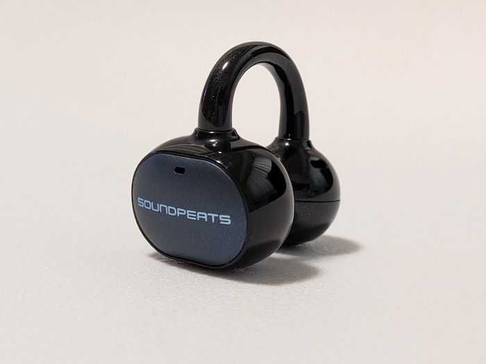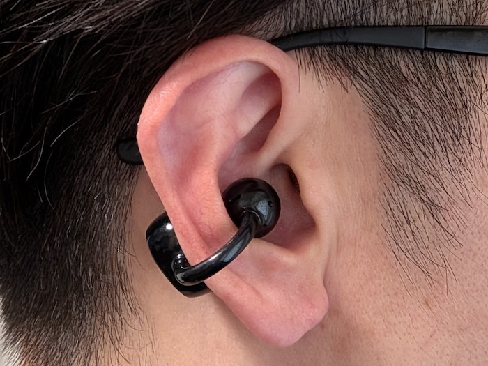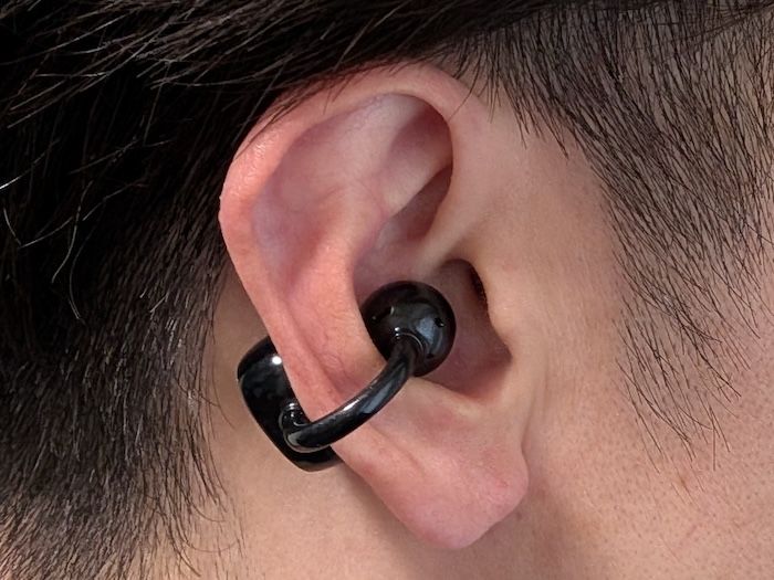 SOUNDPEATS UU2イヤーカフはイヤーカフ型のオープンイヤーイヤホン。耳の軟骨部分に挟んで装着するタイプです。