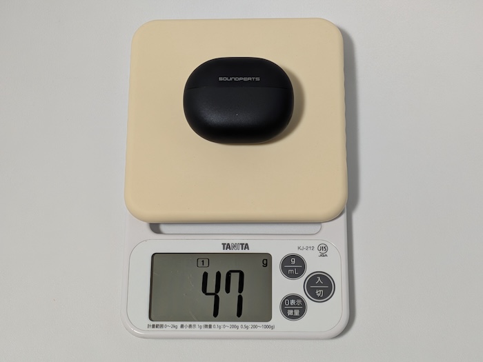 重量はイヤホン込みで47gでした。