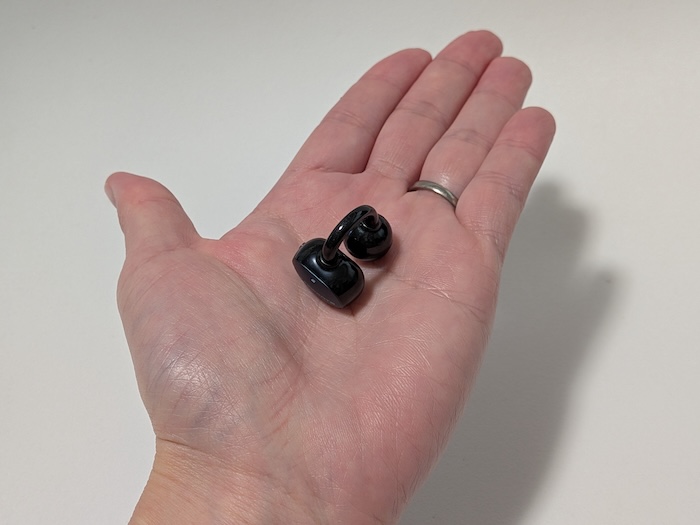 タッチ操作と違って誤操作しにくいのが個人的には好みで、イヤーカフ型との相性もいいと感じました。運動中や手元が見えないシーンでも確実に操作できます。
