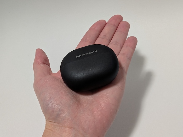 充電ケースのサイズは64.8×51.8×29.0mmで、手のひらにすっぽり収まるサイズ感。