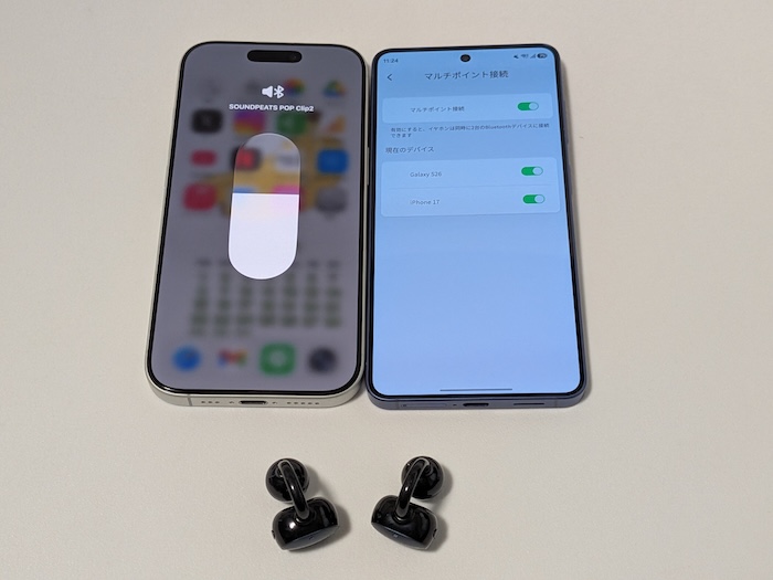 実際にiPhone17で音楽を再生しながらGalaxy S26に着信があった場合、iPhoneの音楽が自動で止まりそのままGalaxy S26で通話できることを確認しました。
