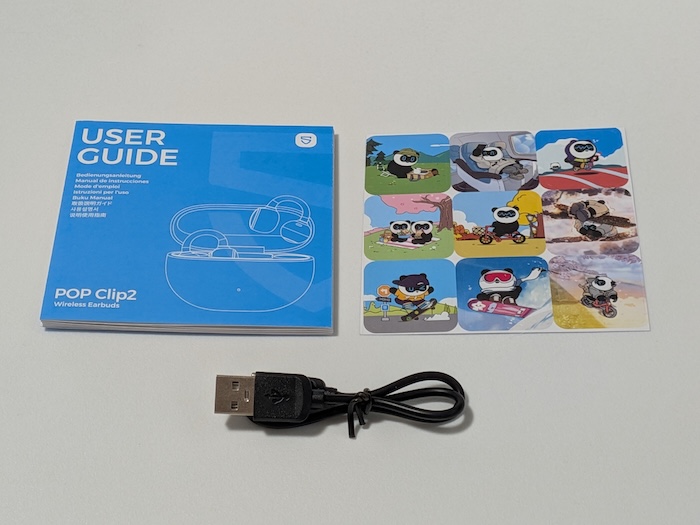 付属品はユーザーガイド・USB Type-A to USB Type-Cのケーブル・ステッカーの3点です。