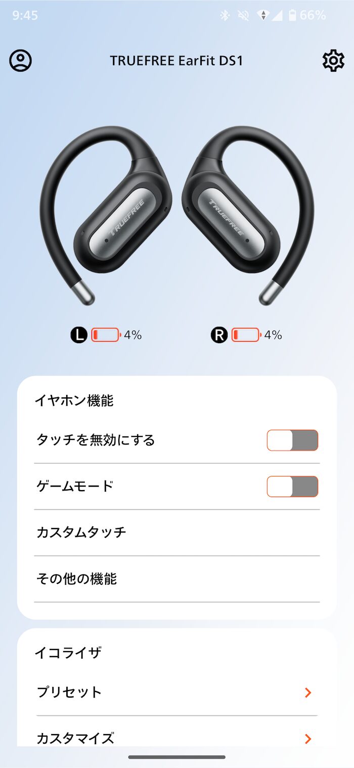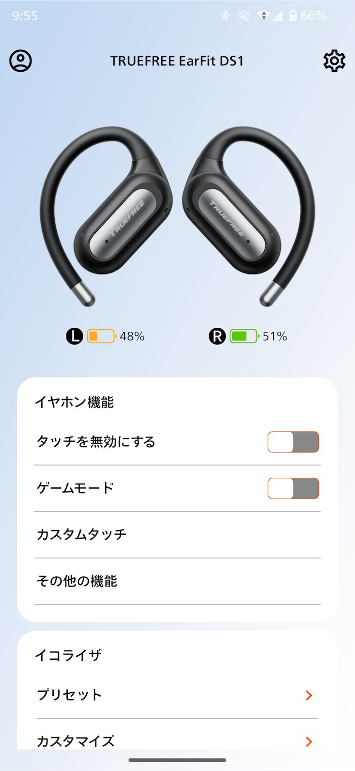 TRUEFREE EarFit DS1は、専用アプリ「TRUEFREE」でサウンドの調整が可能。
