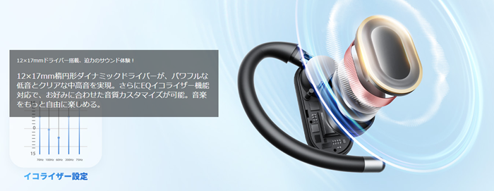 音質面では、大型ドライバーとダイナミックEQの効果により、オープンイヤーながら低音の存在感をしっかり感じられるチューニング。