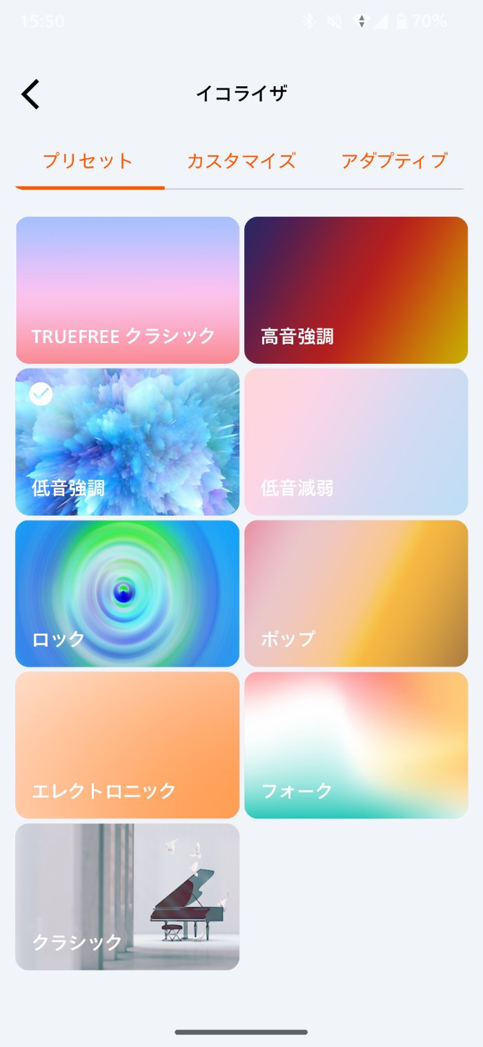全体としてはフラット寄りで、背景に音楽を置きながら作業する、通勤しながらポッドキャストを聴く、といったシーンに最適化された「快適性重視の音作り」です。