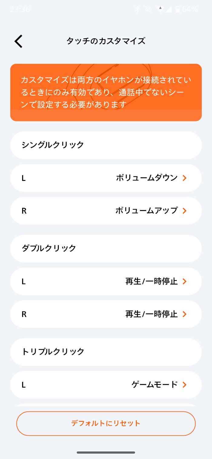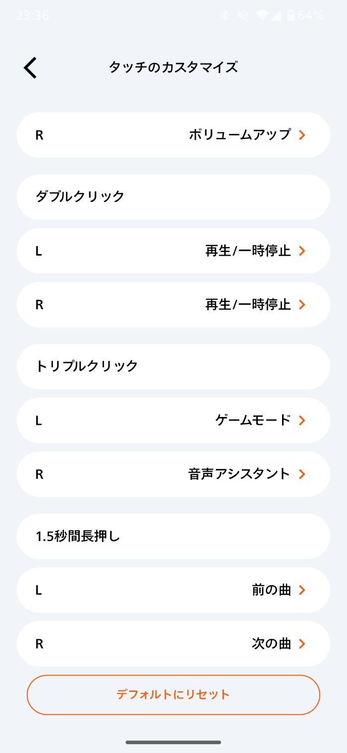 左右のイヤホンを1回タッチで音量調整できるのが嬉しいポイント。