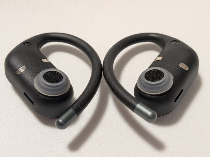 イヤーフックは0.6mmのチタン合金製で、周りがTPUソフトシリコンで覆われているとのこと。(TPUシリコンってなんでしょう?シリコン風TPUかな?)