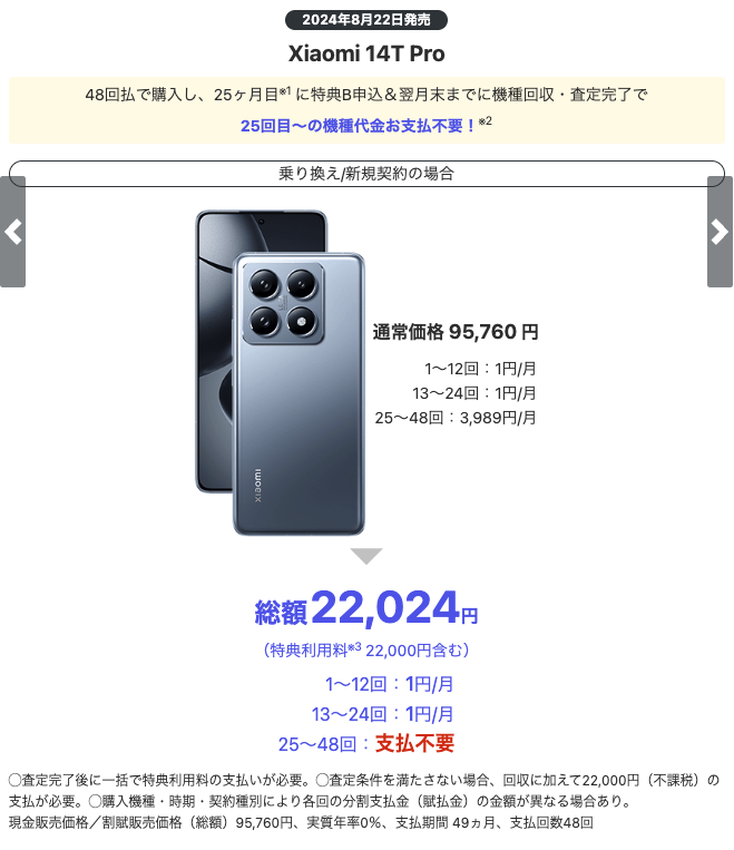 - ソフトバンクでXiaomi 14T Proが24円!キャッシュバックも!
