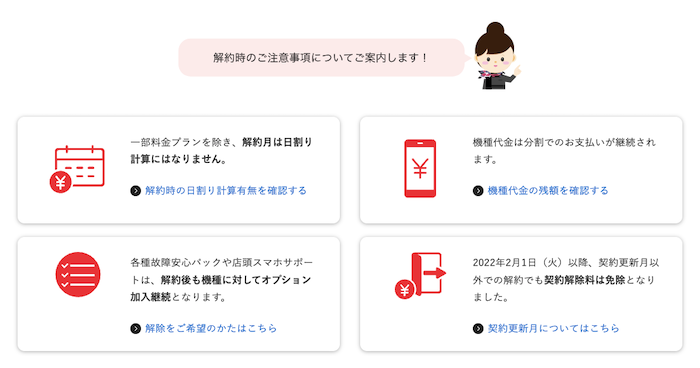 - 故障安心パックなどのオプションは解約後も課金が継続します。不要なオプションは解約前に別途解除が必要です
